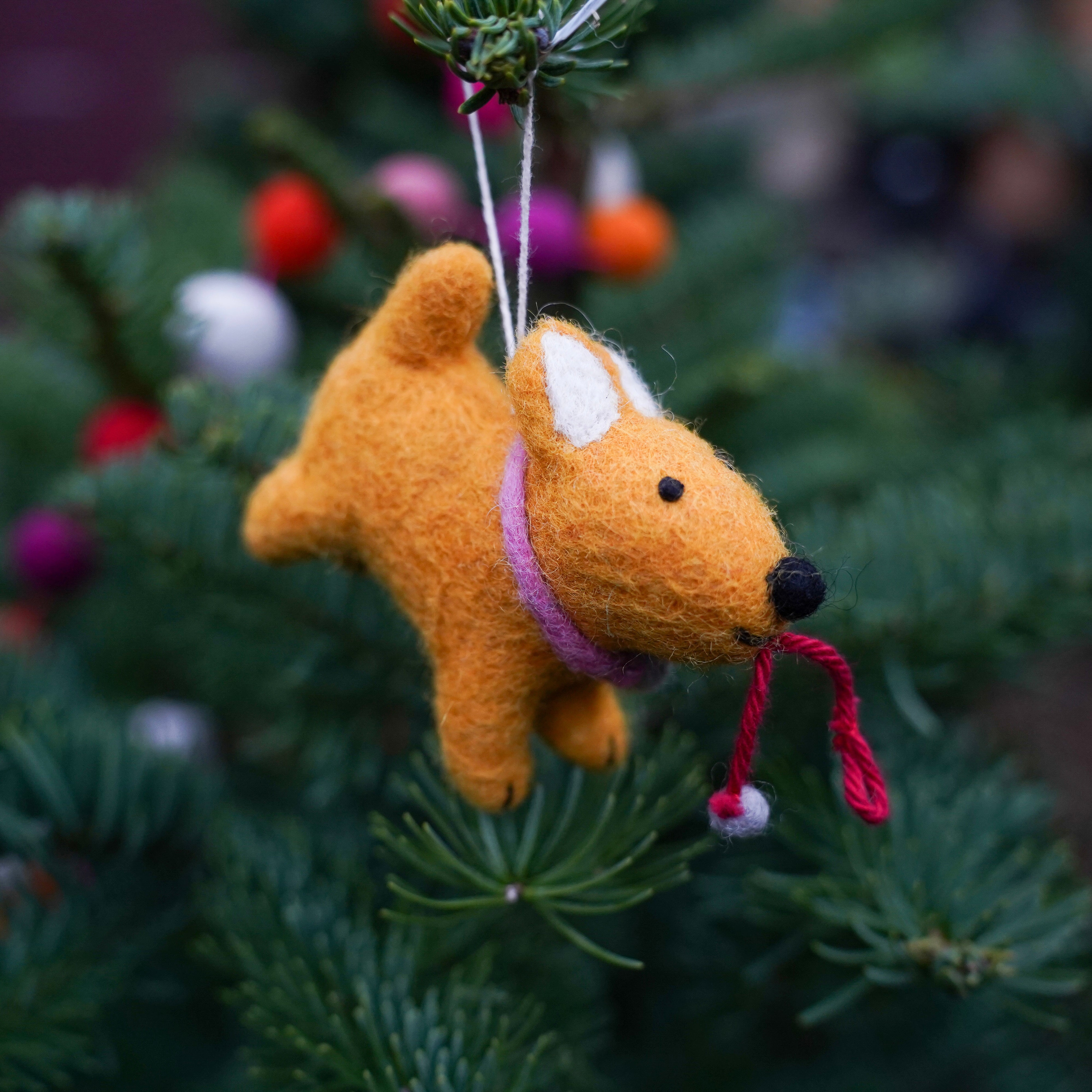 Ginger the Dog Ornament captures a delightful moment of pure puppy joy! This charming decoration features an adorable pup holding its leash in its mouth, ready for adventure.
